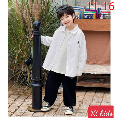 A399085 - Áo sơ mi dài tay thêu Logo chất vải nhập xịn xò cho bé trai_Size 11-16