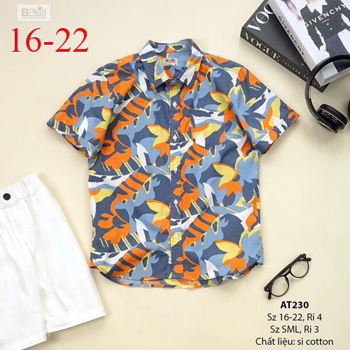 A399258 - Áo sơ mi tay ngắn, hoạ tiết rực rỡ sô lụa, si cotton hoặc kaki thô cho bé trai_Size 16-22