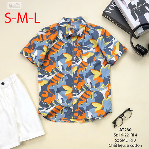 A399259 - Áo sơ mi tay ngắn, hoạ tiết rực rỡ sô lụa, si cotton hoặc kaki thô cho bé trai_Size SML