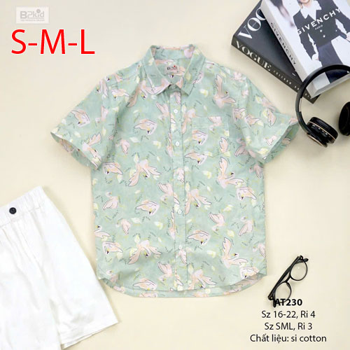 A399262 - Áo sơ mi tay ngắn, hoạ tiết rực rỡ sô lụa, si cotton hoặc kaki thô cho bé trai_Size SML