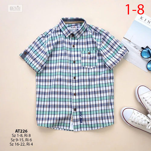 A401650 - Áo sơ mi tay ngắn cài bát bé trai sô gân hoạ tiết nổi caro cotton poplin_Size 1-8