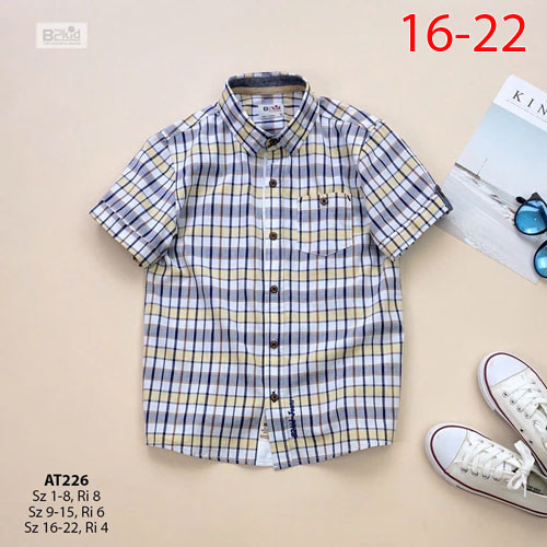 A401656 - Áo sơ mi tay ngắn cài bát bé trai sô gân hoạ tiết nổi caro cotton poplin_Size 16-22