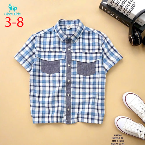 A402158 - Áo sơ mi ngắn tay 2 nắp túi phom OverSize chất liệu xô thô_Size 3-8