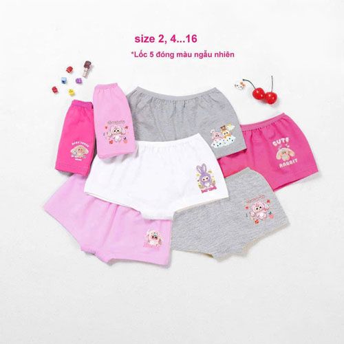 A403957 - Nexxi Win Win Quần chip đùi bé gái lốc 5 hình in Baby three Hello Kitty_Size 2,4,6,8,10,12