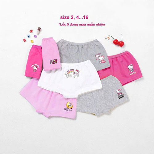 A403958 - Nexxi Win Win Quần chip đùi bé gái lốc 5 hình in Baby three Hello Kitty_Size 2,4,6,8,10,12