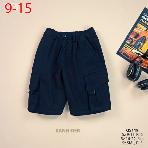 A405107 - Quần short lửng qua gối lưng thun túi hộp kaki nhập khẩu cho bé trai_Size 9-15