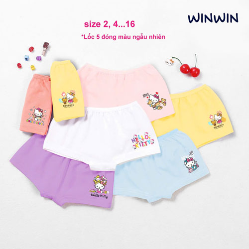 A407343 - Nexxi Win WinQuần chip đùi bé gái lốc 5 màu ngẫu nhiên in Hello Kitty thun cotton 4C_Size