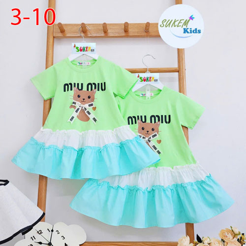A408609 - Đầm cắt phối tùng đuôi cá dáng xoè tiểu thư ngắn tay nhún bèo tiểu thư ép mèo 4d đính nơ M