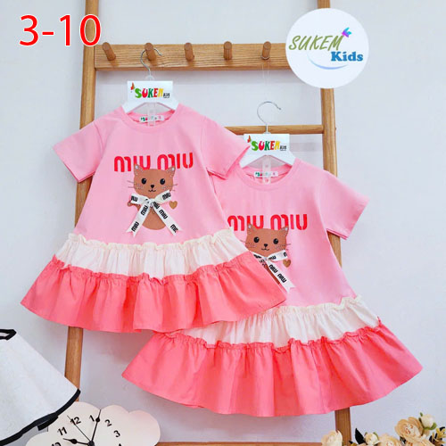 A408611 - Đầm cắt phối tùng đuôi cá dáng xoè tiểu thư ngắn tay nhún bèo tiểu thư ép mèo 4d đính nơ M