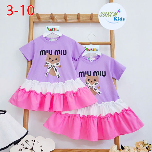 A408612 - Đầm cắt phối tùng đuôi cá dáng xoè tiểu thư ngắn tay nhún bèo tiểu thư ép mèo 4d đính nơ M