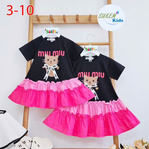 A408613 - Đầm cắt phối tùng đuôi cá dáng xoè tiểu thư ngắn tay nhún bèo tiểu thư ép mèo 4d đính nơ M