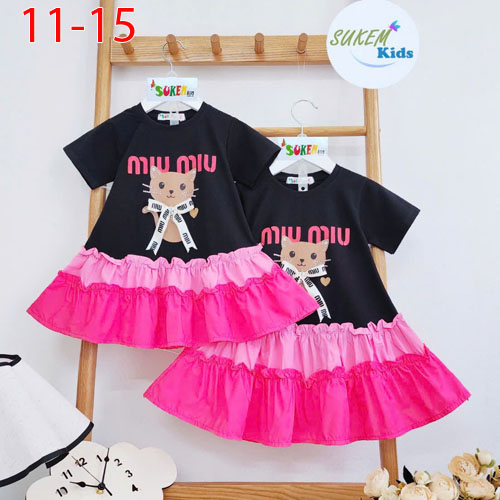 A408614 - Đầm cắt phối tùng đuôi cá dáng xoè tiểu thư ngắn tay nhún bèo tiểu thư ép mèo 4d đính nơ M