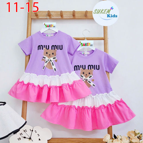 A408615 - Đầm cắt phối tùng đuôi cá dáng xoè tiểu thư ngắn tay nhún bèo tiểu thư ép mèo 4d đính nơ M