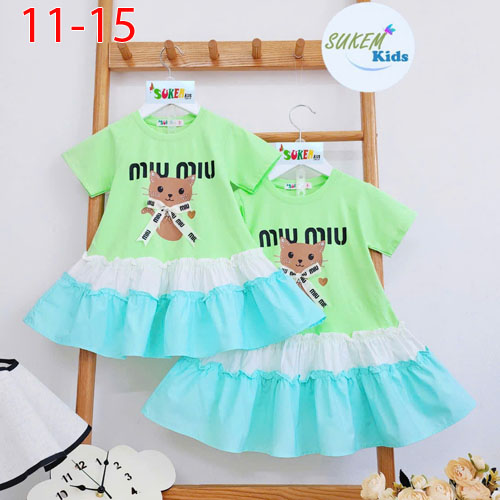 A408618 - Đầm cắt phối tùng đuôi cá dáng xoè tiểu thư ngắn tay nhún bèo tiểu thư ép mèo 4d đính nơ M