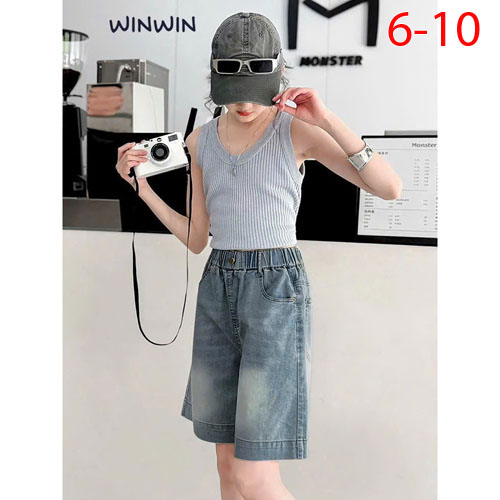 A410382 - Nexxi Win Win quần jean ngố cho bé gái lưng thun, phối túi thêu chữ siêu xinh_Size 6-10