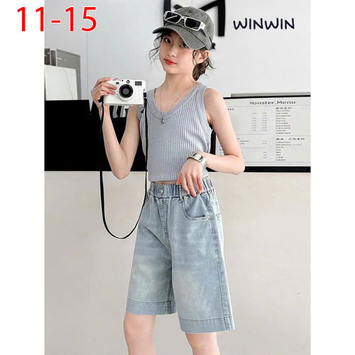 A410384 - Nexxi Win Win quần jean ngố cho bé gái lưng thun, phối túi thêu chữ siêu xinh_Size 11-15