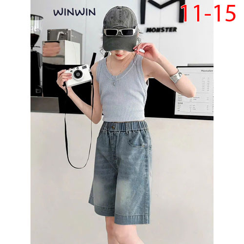 A410385 - Nexxi Win Win quần jean ngố cho bé gái lưng thun, phối túi thêu chữ siêu xinh_Size 11-15