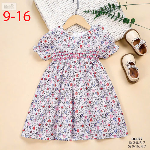 A410539 - Đầm xích móc thủ công thô cotton xoè tay phồng_Size 9-16