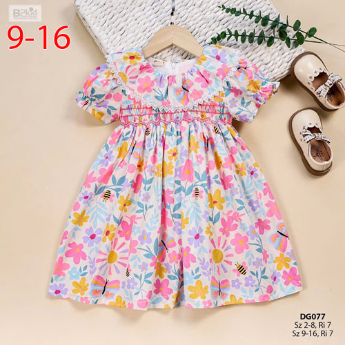A410541 - Đầm xích móc thủ công thô cotton xoè tay phồng_Size 9-16