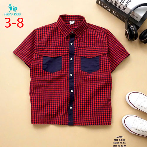 A411956 - Áo sơ mi ngắn tay 2 nắp túi phom oversize chất liệu xô thô_Size 3-8
