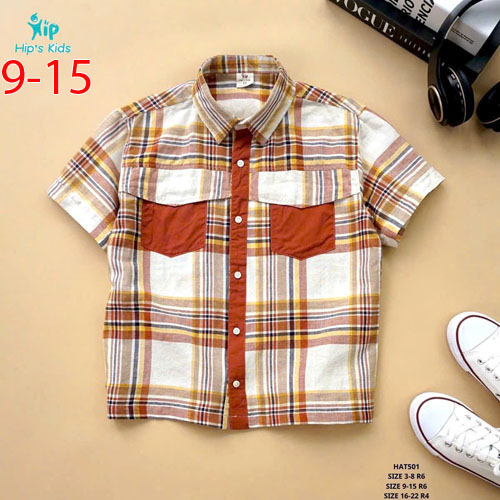 A411960 - Áo sơ mi ngắn tay 2 nắp túi phom oversize chất liệu xô thô_Size 9-15