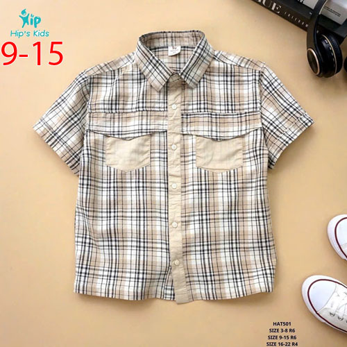 A411961 - Áo sơ mi ngắn tay 2 nắp túi phom oversize chất liệu xô thô_Size 9-15