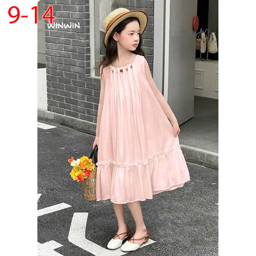 A412922 - Nexxi Win Win Đầm đũi Hàn sát nách cổ xếp ly đính phụ kiện_Size 9-14