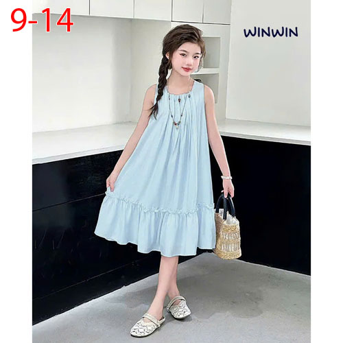 A412923 - Nexxi Win Win Đầm đũi Hàn sát nách cổ xếp ly đính phụ kiện_Size 9-14