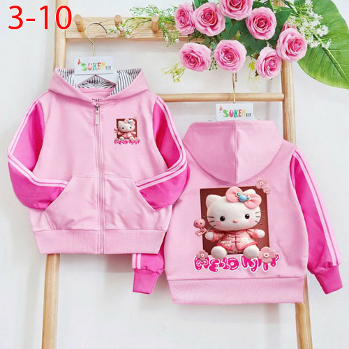 A414141 - Áo khoác ép Hello KITTY may Nón 2 bên tay cắt phối chạy dây viền thể thao chất da cá coton