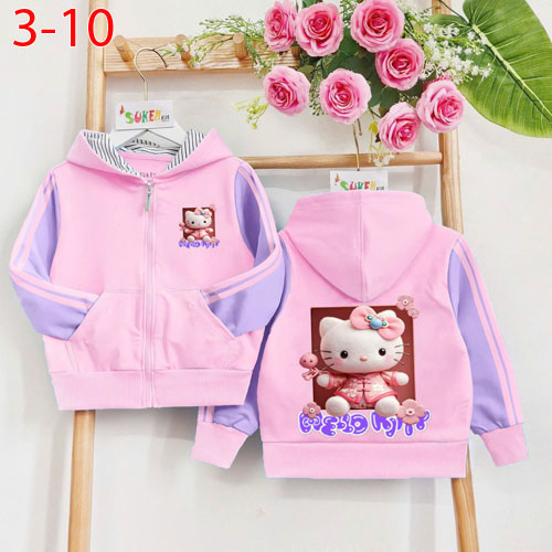 A414142 - Áo khoác ép Hello KITTY may Nón 2 bên tay cắt phối chạy dây viền thể thao chất da cá coton