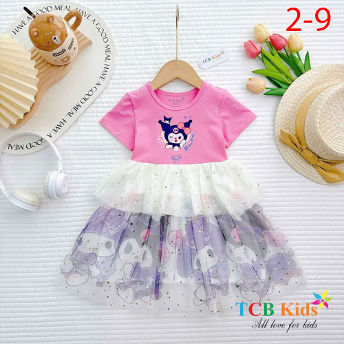 A414339 - Đầm thun phối lưới KUROMi trên thun cotton 4c thân dưới gồm 3 lớp_Size 2-9