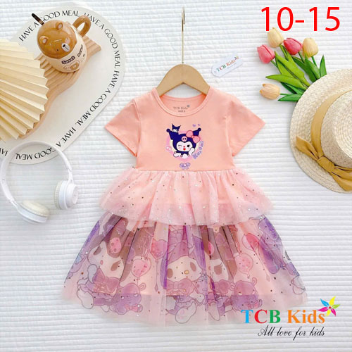 A414344 - Đầm thun phối lưới KUROMi trên thun cotton 4c thân dưới gồm 3 lớp_Size 10-15