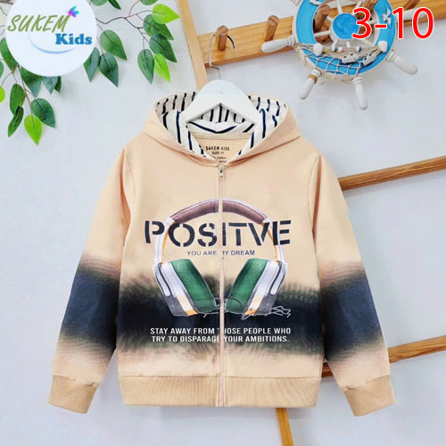 A418021 - Áo khoác bé trai phun cham phối hình ép tai nghe POSITVE có túi 2 bên chất vải da cá cotto