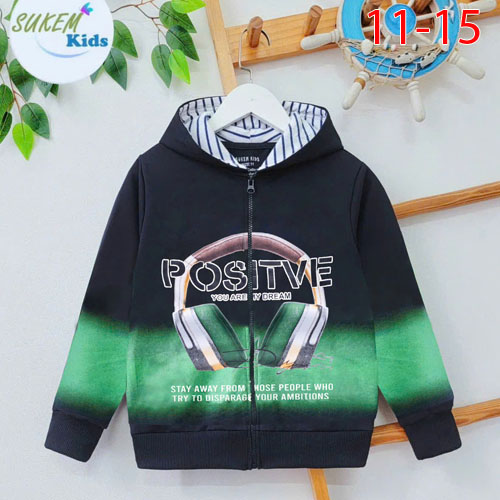 A418026 - Áo khoác bé trai phun cham phối hình ép tai nghe POSITVE có túi 2 bên chất vải da cá cotto