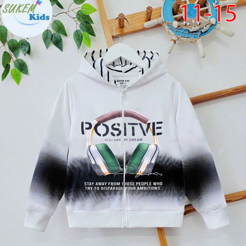 A418027 - Áo khoác bé trai phun cham phối hình ép tai nghe POSITVE có túi 2 bên chất vải da cá cotto