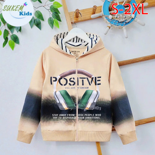 A418035 - Áo khoác bé trai phun cham phối hình ép tai nghe POSITVE có túi 2 bên chất vải da cá cotto