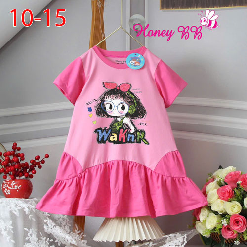 A418192 - Đầm thun form A tạo bèo lượn sóng phối sườn màu phối và hình in cô bé Waknk_Size 10-15