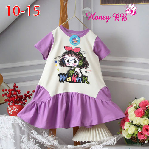 A418193 - Đầm thun form A tạo bèo lượn sóng phối sườn màu phối và hình in cô bé Waknk_Size 10-15