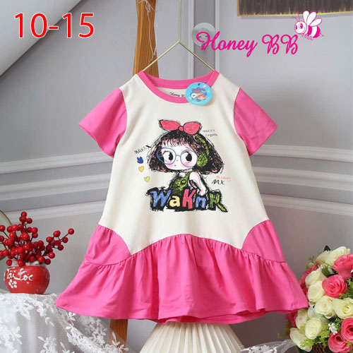 A418196 - Đầm thun form A tạo bèo lượn sóng phối sườn màu phối và hình in cô bé Waknk_Size 10-15