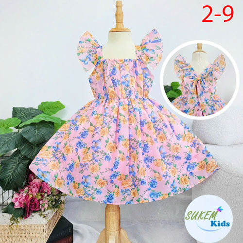 A418438 - Đầm xinh đẹp đầy sắc hoa tay cánh tiên duyên dáng chất liệu tơ woan bông_Size 2-9