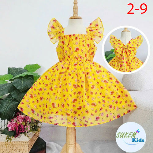 A418441 - Đầm xinh đẹp đầy sắc hoa tay cánh tiên duyên dáng chất liệu tơ woan bông_Size 2-9