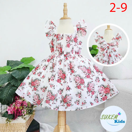 A418442 - Đầm xinh đẹp đầy sắc hoa tay cánh tiên duyên dáng chất liệu tơ woan bông_Size 2-9
