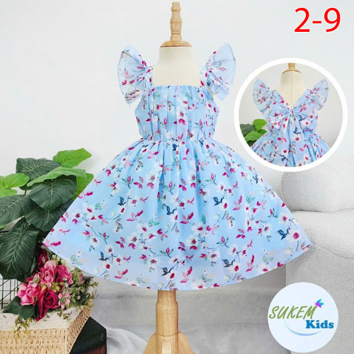 A418443 - Đầm xinh đẹp đầy sắc hoa tay cánh tiên duyên dáng chất liệu tơ woan bông_Size 2-9