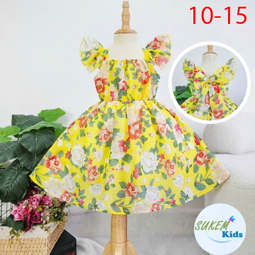 A418446 - Đầm xinh đẹp đầy sắc hoa tay cánh tiên duyên dáng chất liệu tơ woan bông_Size 10-15