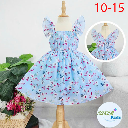 A418448 - Đầm xinh đẹp đầy sắc hoa tay cánh tiên duyên dáng chất liệu tơ woan bông_Size 10-15