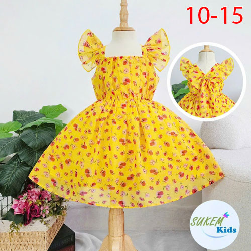A418450 - Đầm xinh đẹp đầy sắc hoa tay cánh tiên duyên dáng chất liệu tơ woan bông_Size 10-15