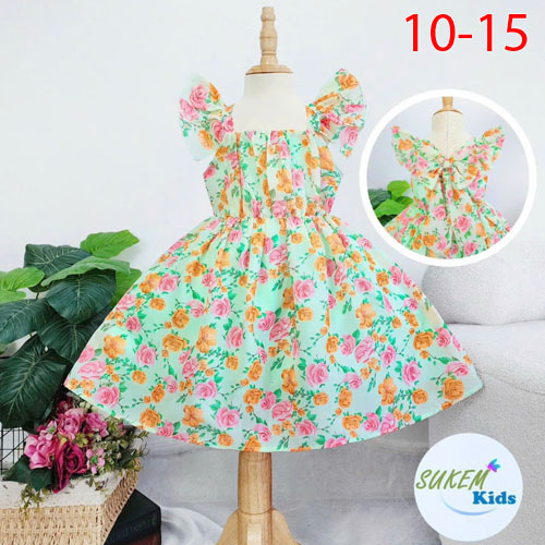 A418452 - Đầm xinh đẹp đầy sắc hoa tay cánh tiên duyên dáng chất liệu tơ woan bông_Size 10-15