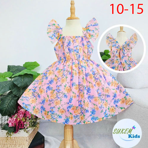 A418453 - Đầm xinh đẹp đầy sắc hoa tay cánh tiên duyên dáng chất liệu tơ woan bông_Size 10-15