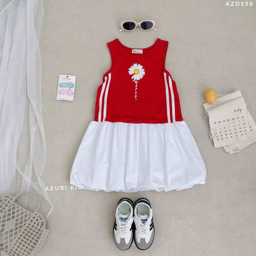 A418637 - Đầm thun hoa DAISY sát nách mát mẻ, phom váy quả bí may dây sọc trang trí sườn áo_Size 2-1