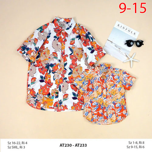 A419029 - Áo sơ mi tay ngắn, hoạ tiết rực rỡ sô lụa, si cotton hoặc kaki thô cho bé trai_Size 9-15